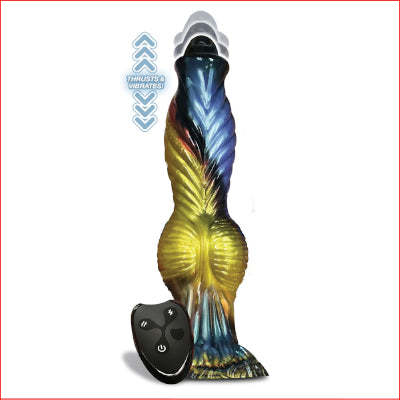 As the phrase goes, “risen like a phoenix,” so did our Golden Phoenix in the new Alien Nation. With its amazing thrusting ability, its textural array, and its dazzling metallic accents, the Phoenix not only rose, but lustfully entered every willing partner it came upon. And it came upon many... As a matter of fact, it was said that true pleasure was not achieved unless it began with ”the rising of the Phoenix.” And with its seven vibrating functions and seven thrusting modes, we invite you to control the remote to rise to the occasion!