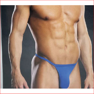 This is a sleek, slinky, and very comfortable thong. It has a string waistband with a triangle piece of fabric in the back that connects to the pouch with a string.