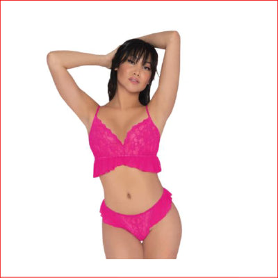 Stretch lace bralette with adjustable straps and a wide mesh ruffle underbust
