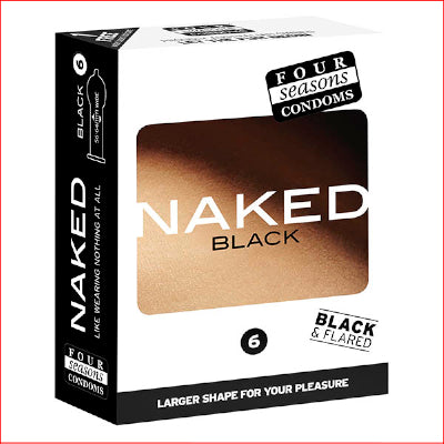 The Naked Black Condoms by Four Seasons is a larger condom with a unique flared shape head for increased comfort and pleasure.