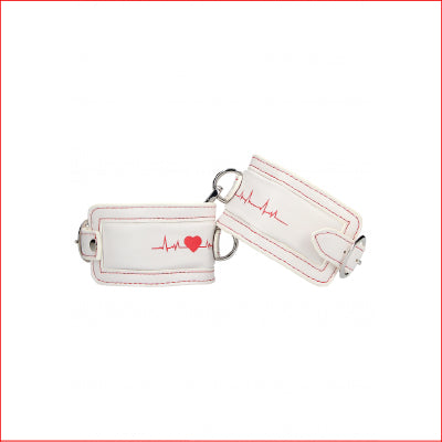 Ankle Cuffs - Nurse Theme - White Is your lover in need of some 'extra' special care? Or are you feeling like a naughty nurse? These cuffs will surely make you or your partners heart beat faster. Enrich your fantasy play with these soft yet super strong Ankle Cuffs! Use them by themselves or pair them together with the wrist cuffs and hogtie available in the same fine design.