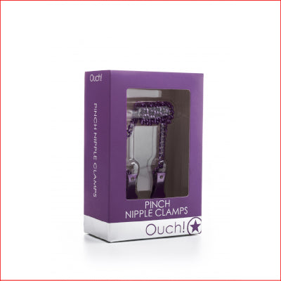 Pinch Nipple Clamps - Purple These nipple clamps with chain from Ouch! are easy to use and suitable for both him and her.