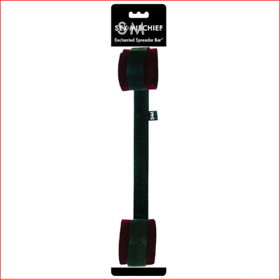 Spread them open and have your way with them! This elegant spreader bar is adorned on either end with burgundy Enchanted cuffs that are easy to put on and remove, but secure. These soft, but sturdy cuffs adjust to the perfect fit around ankles or wrists, which will be pried apart by the bar between them. Your partner will be powerless as you have your way with their exposed and vulnerable body! The fantasy is in your hands to decide whether to keep them on their feet, bent over, on their knees, or on their back!