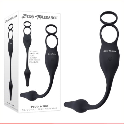 Experience two intense pleasure sensations at once with this vibrating plug and penis ring combo that delivers a delicious buzz to the perineum. Two stretchy silicone rings comfortably restrain the shafts and balls while a narrowly tapered plug offers flexibility for maximum ease. The interconnected cord ensures safe retrieval.