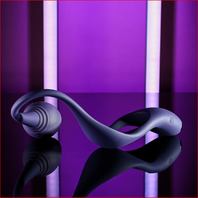 Experience pleasure from tip to tail with this innovative toy that features a vibrating plug on one end and a vibrating penis ring on the other, with a long, flexible tail in between that offers up multiple possibilities, solo or not.